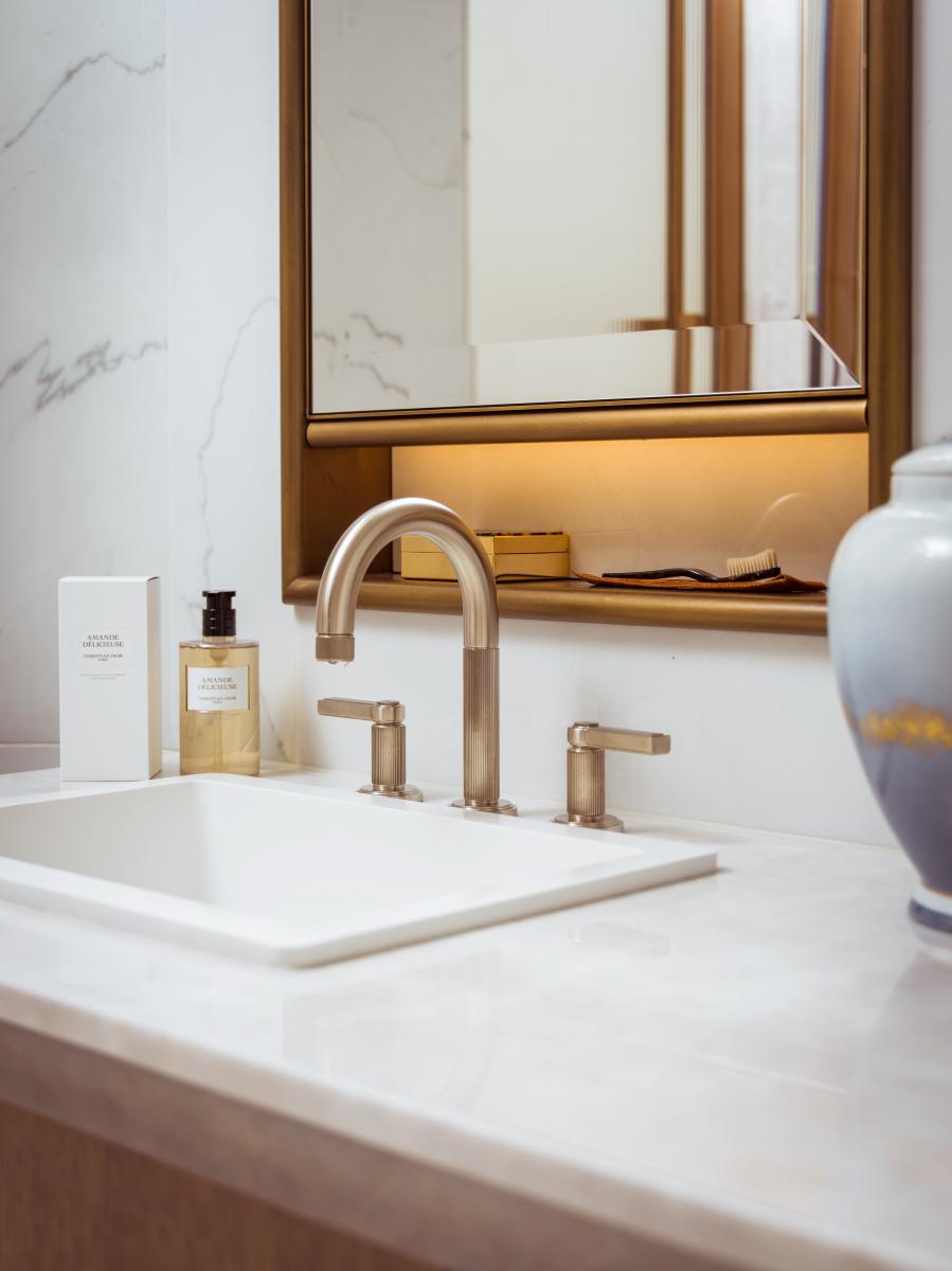 يفيض كلّ مسكن بأروقة تزخر بالفنّ العريق المستقدم من معرض "كادوجان". كما يزيّن الجدران قرصٌ ذهبي اللون صُنع من النحاس وصُمّم خصّيصاً لهذه المساحة.