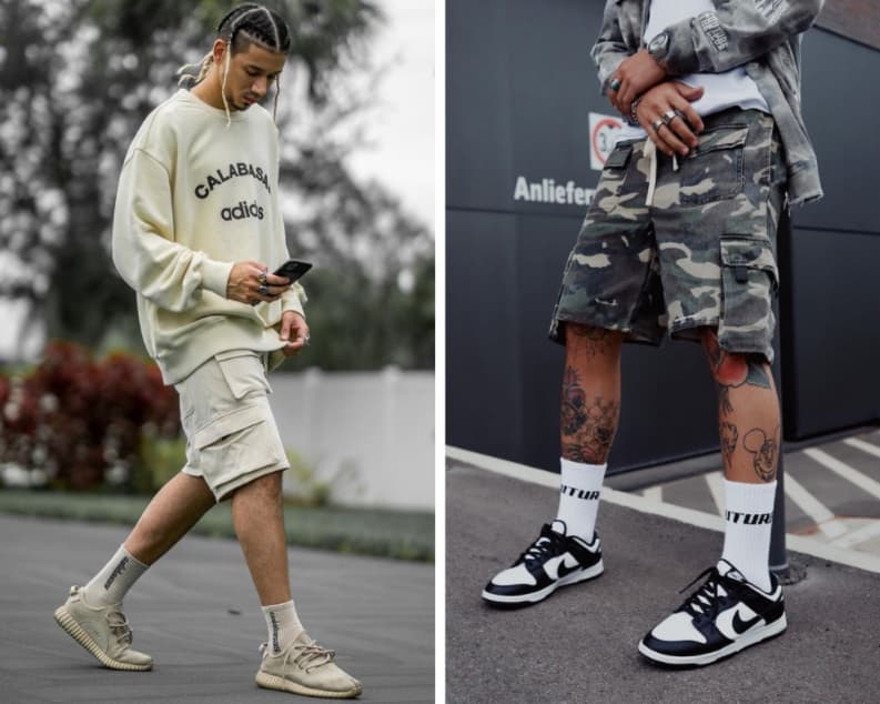 عادت شورتات كارغو القصيرة إلى الظّهور بشكل كبير في عام 2021. ولكن على عكس تصاميمها الواسعة ذات الجيوب الكبيرة غير المرغوبة في السّنوات الماضية ، فإنّ كثيرًا من شورتات كارغو للرّجال اليوم تأتي أكثر جاذبيّة وتشعرك بالنّحافة والأناقة والنّمط العصريّ. ارتدها مع تي شيرت بسيط وزوج من الأحذية الرّياضيّة المميّزة لتمنحك المظهر الّذي يتمنّاه كلّ شاب رياضيّ.