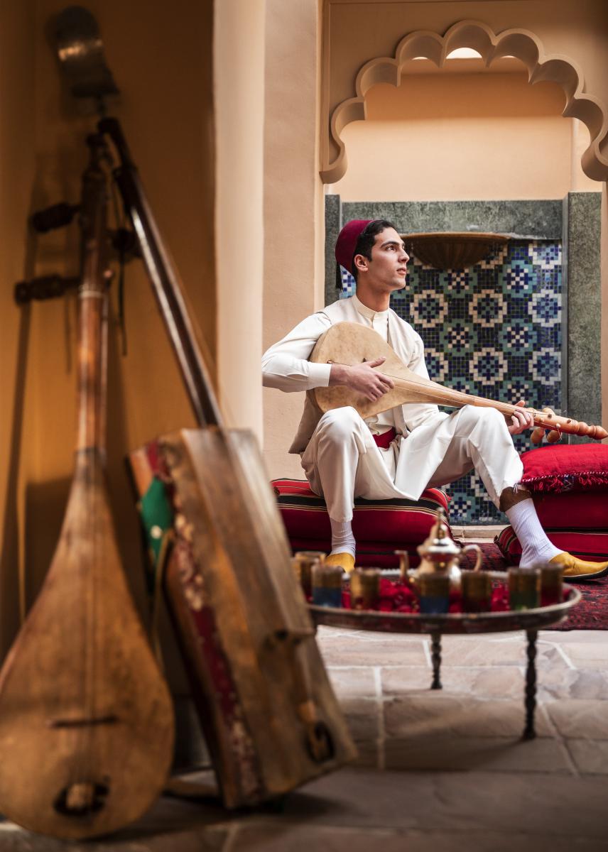 ويكتمل جمال التجربة مع مجموعة من المقطوعات الموسيقية لأبرز الفنانين المغربيين الكلاسيكيين، مما يثري الطابع المراكشي التقليدي للمطعم.