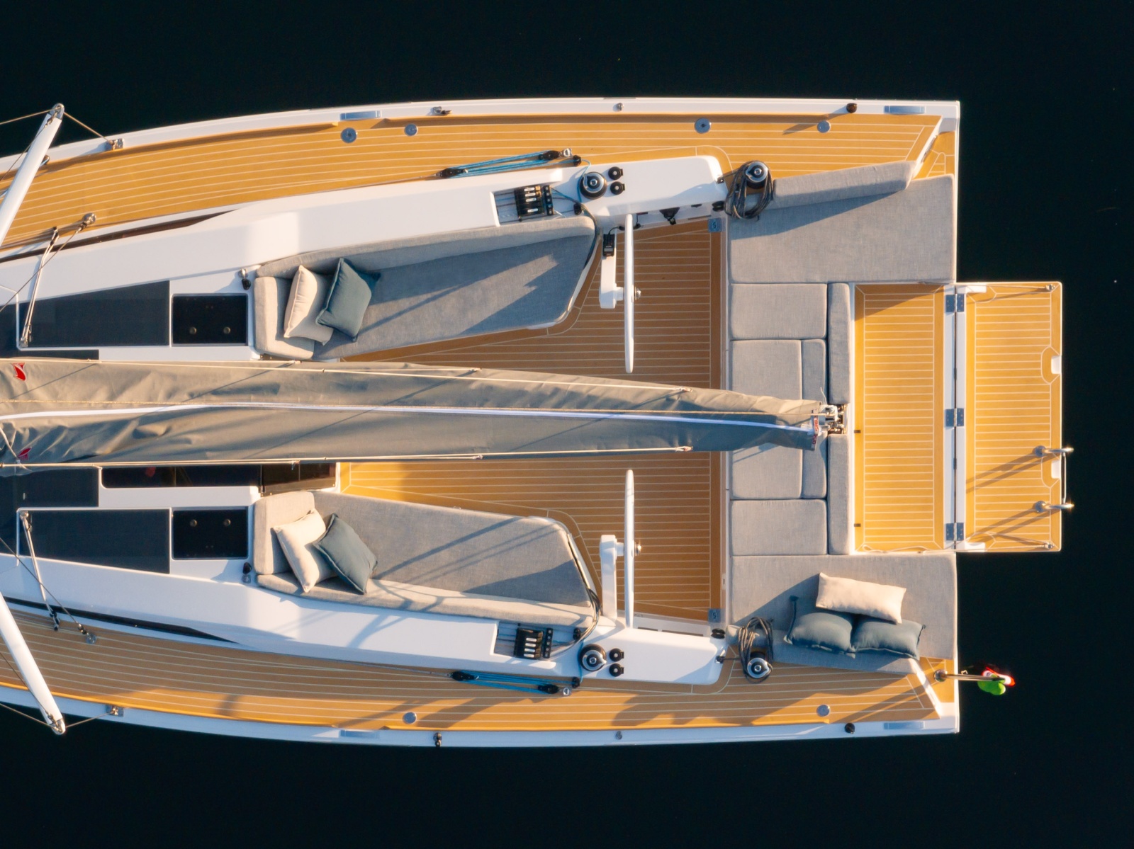 في خطوة بيئية لافتة، يعتمد "GS Blue" على راتنج "Elium" من شركة Arkema، وهي مادة قابلة لإعادة التدوير بالكامل، فيما يأتي قلب الهيكل من مادة PET المعاد تدويرها من نفايات المستهلكين. التصميم يسمح أيضًا بتفكيك المكونات بسهولة عند نهاية عمر اليخت.