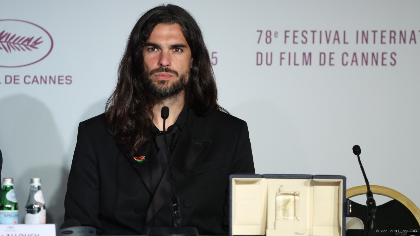 حصل المخرج الاسباني الفرنسي أوليفر لاكسي على جائزة لجنة التحكيم عن فيلمه Sirat، واختار بدلة أنيقة سوداء مزدوجة الأزرار عند الصدر، مع قميص أسود اللون.