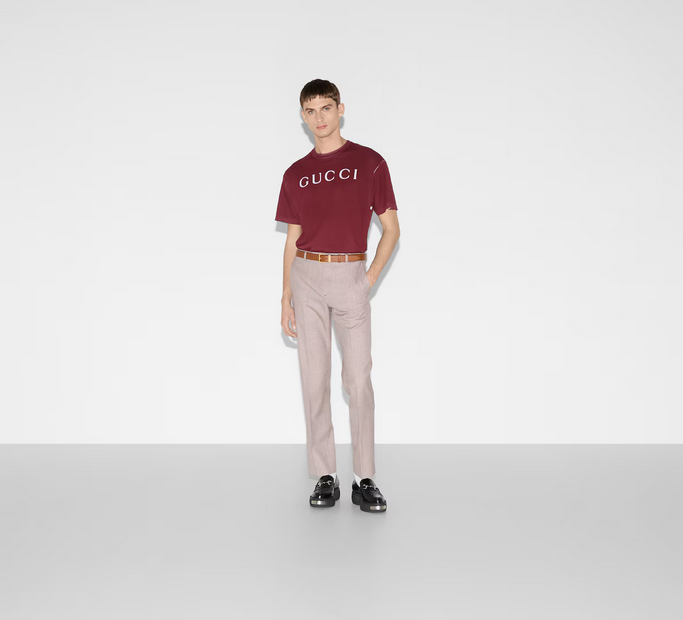في أحدث مجموعاتها تقدّم علامة جوتشي Gucci تشكيلة أنيقة، تتضمن حذاء G75 الأحدث باللون الأحمر الداكن، مع شعار العلامة ونقشة GG الشهيرة.