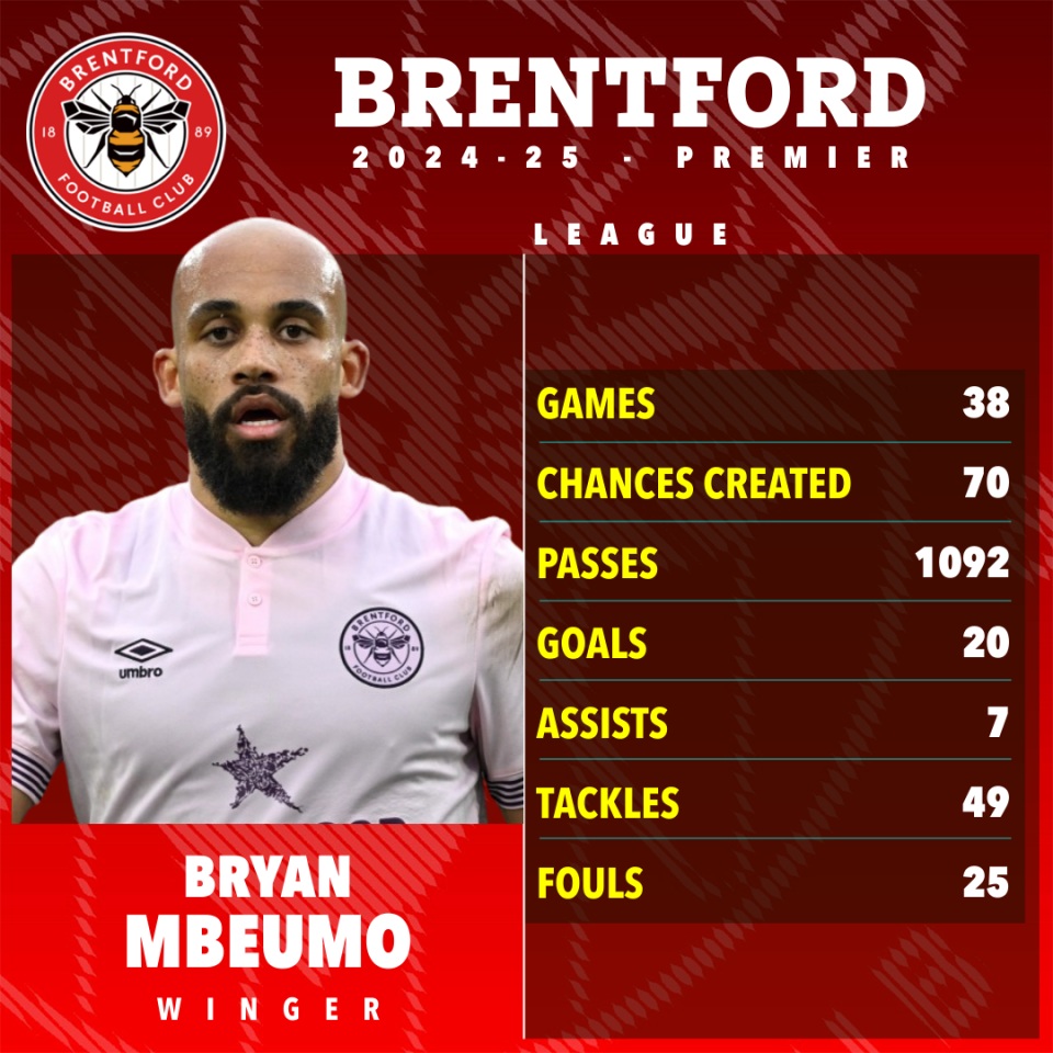 رغم أن مبيومو البالغ من العمر 26 عامًا أبدى رغبته الواضحة في الانتقال إلى "أولد ترافورد" هذا الصيف، فإن برينتفورد لا يزال متمسكًا بسعره.