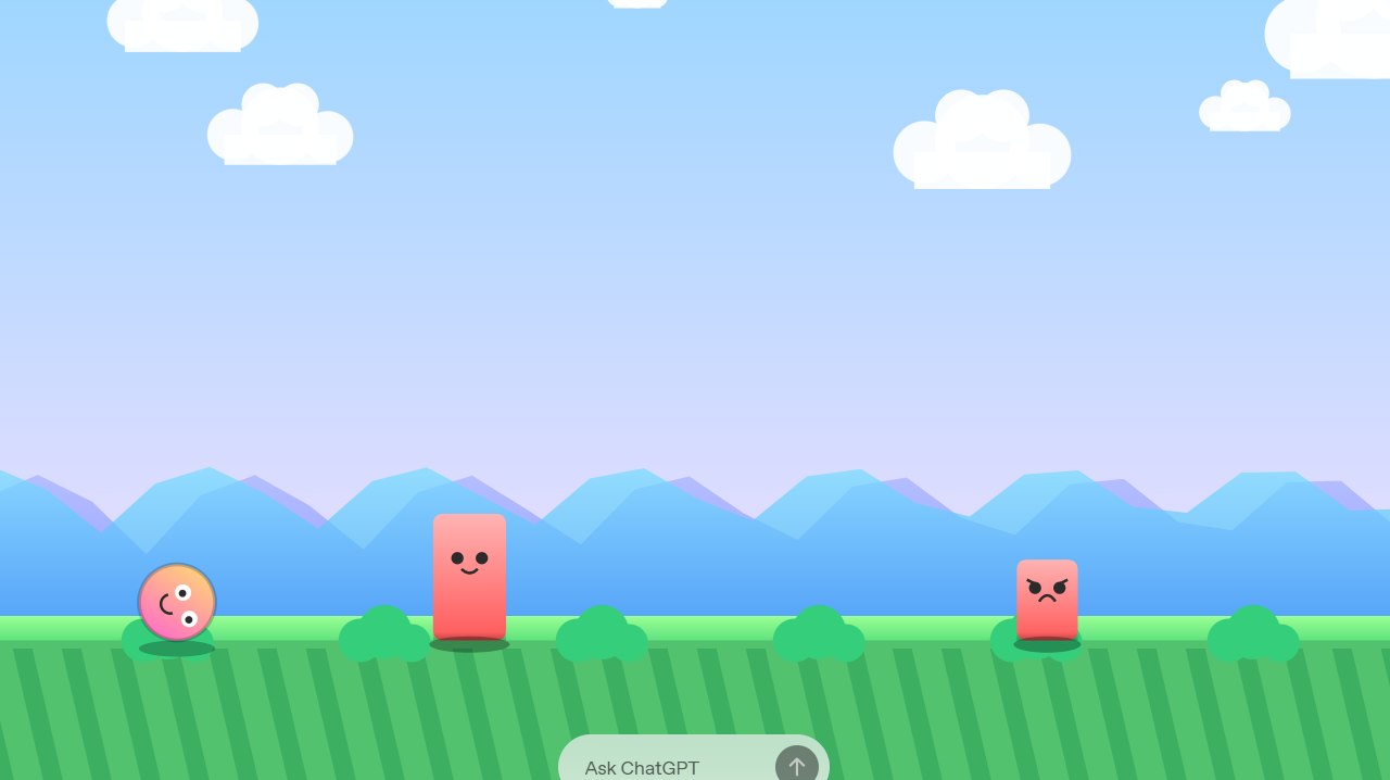 عبر مدونتها، شاركتنا OpenAI مثالًا على لعبة أُنشئت باستخدام أمرٍ واحد. اللعبة عبارة عن كرة تتدحرج وتقفز بين الحواجز بأسلوبٍ سلس وبسيط يجعلك تشعر أنها مبرمجة بواسطة إنسان. تصميم البيئة في اللعبة لطيف جدًا وشكل الكرة بعينيها وفمها يُهيئ للناظر أن مُصممها لا بد وأن يكون بشريًا. أرفقت OpenAI الأمر المستخدم حتى يُجرّبه أي شخص بنفسه.
