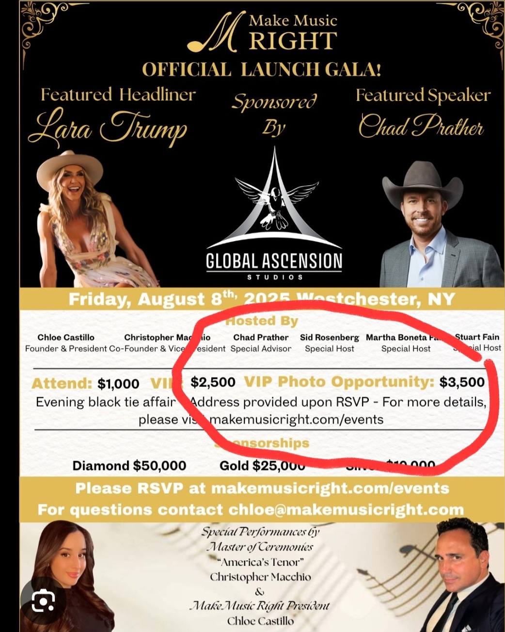 It is my great honor to host the official launch gala this Friday at @TrumpNationalNY of the new charity I have co-founded with @chloepianist, @MakeMusicRight, with our esteemed featured headliners Lara Trump @LaraLeaTrump and Chad Prather @WatchChad. Together, we will restore… pic.twitter.com/UKPPWymiHe