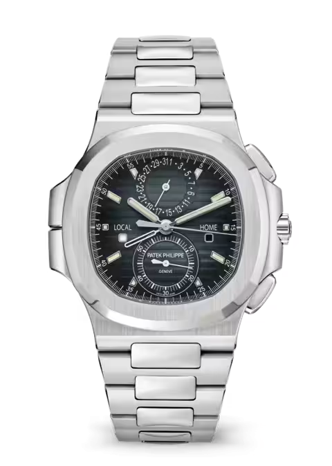 تُعد Nautilus Travel Time Chronograph من باتيك فيليب واحدةً من أبرز إبداعات الدار، فهي نموذج نادر يجمع بين تعقيدات متقدمة ضمن تصميم رياضي أنيق من الفولاذ. تضم الساعة ثلاث وظائف مطلوبة بشدّة: كرونوغراف فلاي-باك ذاتيّ التعبئة، عرض منطقتين زمنيتين، بالإضافة إلى عقرب تاريخ متزامن مع التوقيت المحلي.