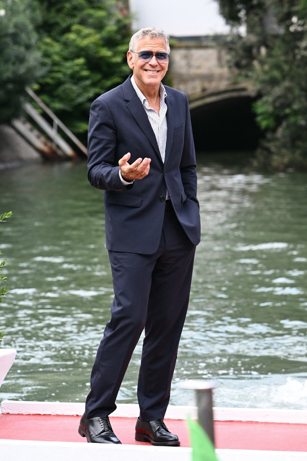 حضر النجم جورج كلوني مع زوجته أمل كلوني لحضور المهرجان، وظهر وهو يرتدي بدلة أنيقة بلون كحلي وقميص بخطوط طولية.