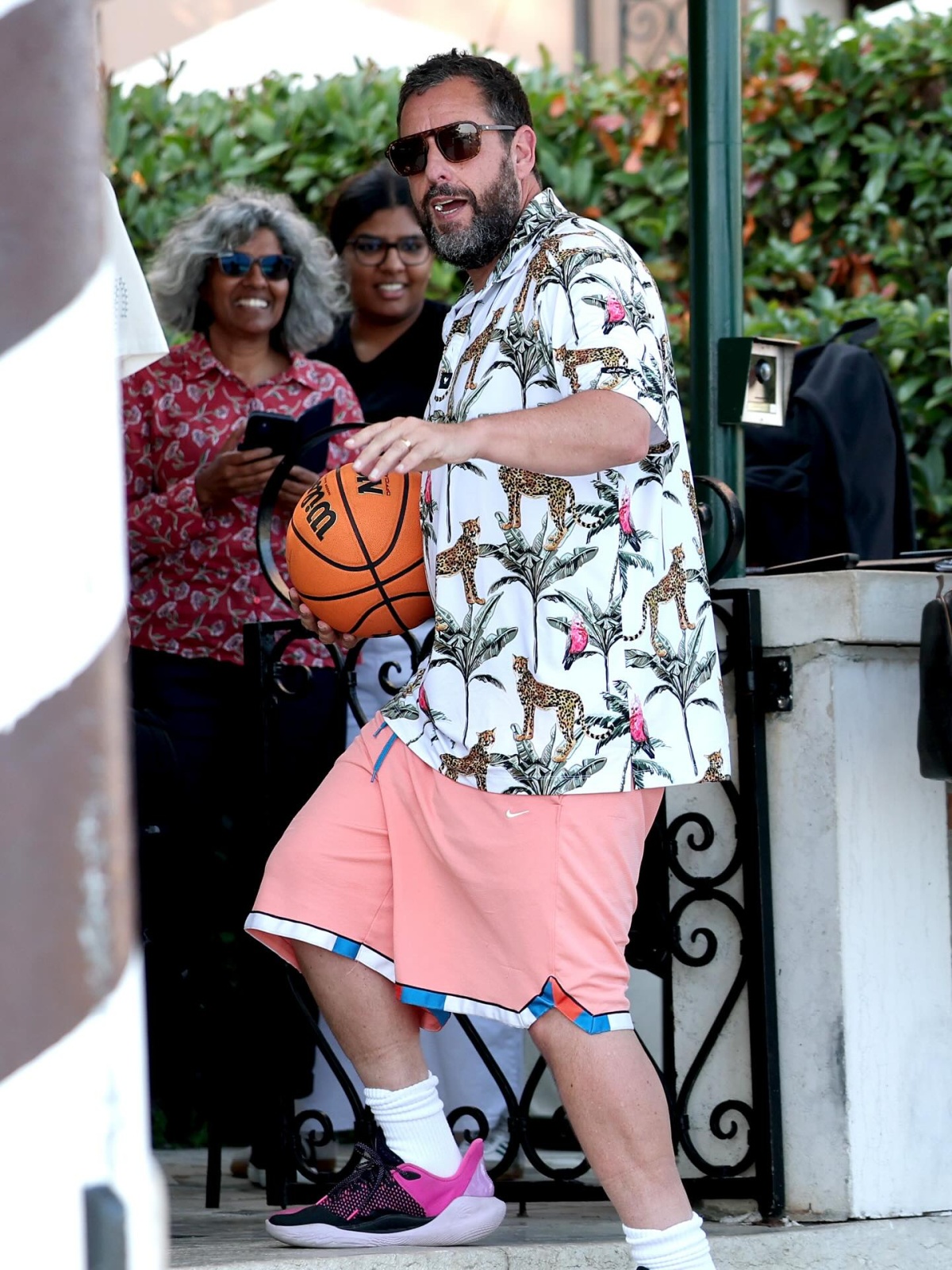 فيما لفت النجم آدم ساندلر الأنظار بإطلالته الكاجوال غير المألوفة عند حضوره لمدينة فينيسيا، إذ ظهر وهو يرتدي شورت بلون وردي وقميص بطبعات لحيوان الفهد على خلفية بيضاء.