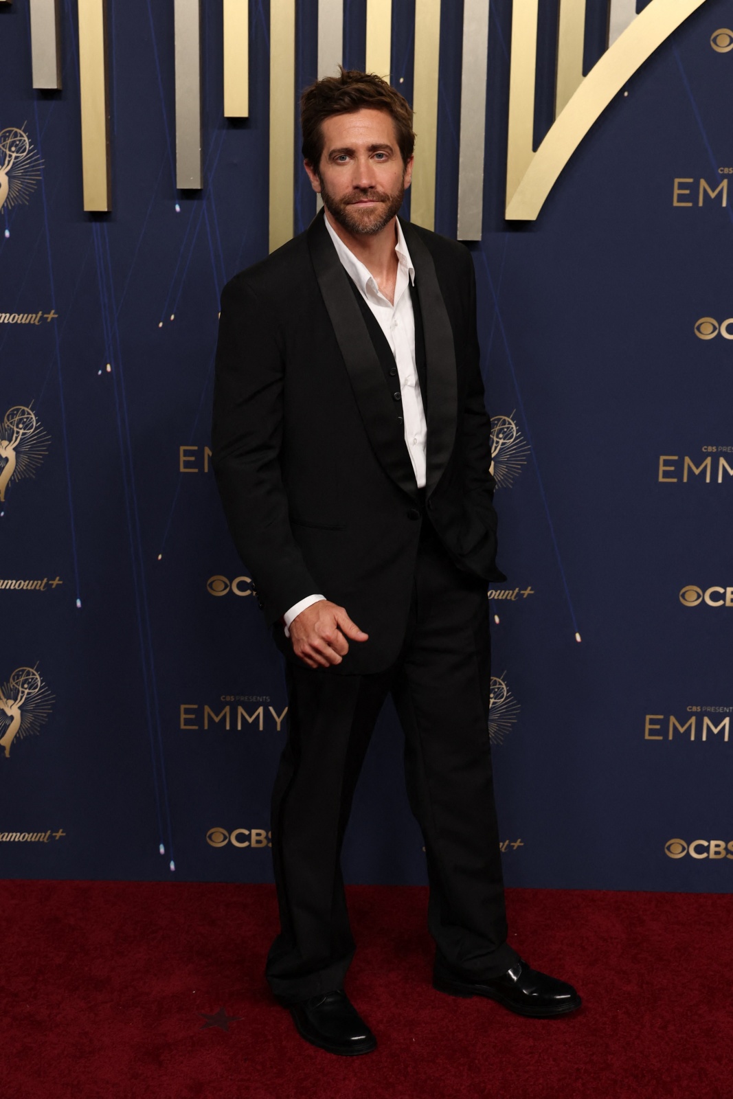 وأطل النجم جاك جلينهال ببدلة توكسيدو سوداء، وجاءت السترة بياقة من الساتان، ونسقها مع قميص أبيض واستغنى تمامًا عن رابطة العنق.