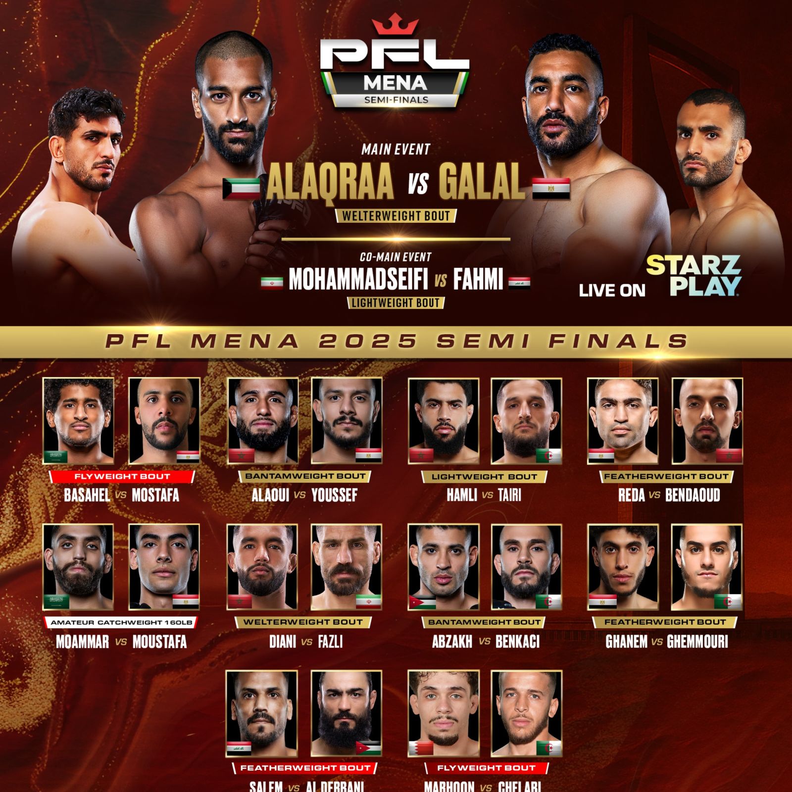 | النزال الرئيسي – نصف نهائي وزن الوسط | محمد الأقرع × أيمن جلال |