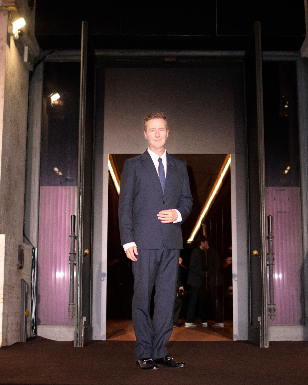 ببدلة رسمية، حرص إدوراد نورتون على حضور عرض أزياء دار جوتشي واختارها باللون الرمادي..