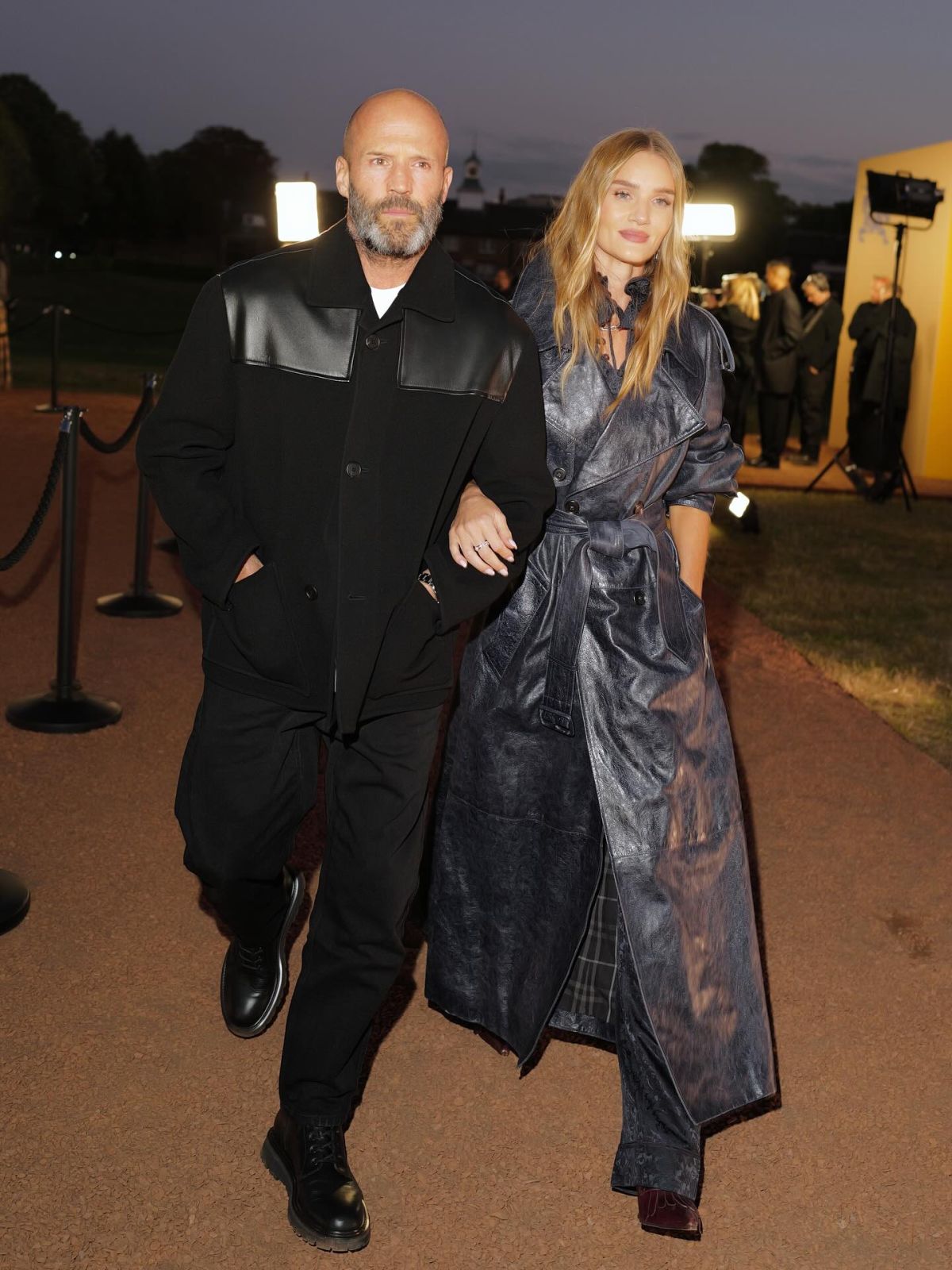 حرص النجم جيسون ستاثام على حضور عرض أزياء دار بربري، واختار إطلالة أنيقة من سترة شتوية ثقيلة باللون الأسود ع سروال من نفس اللون.