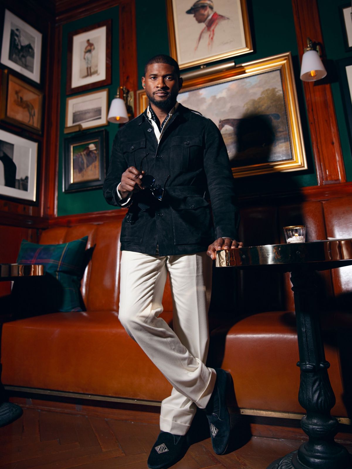 تواجد النجم آشر في عرض أزياء دار رالف لورين، واختار إطلالة أنيقة من سترة سفاري مخملية خفيفة باللون الرمادي مع سروال عاجي كلاسيكي، مع حذاء أيقوني من الدار الأمريكية الشهيرة.