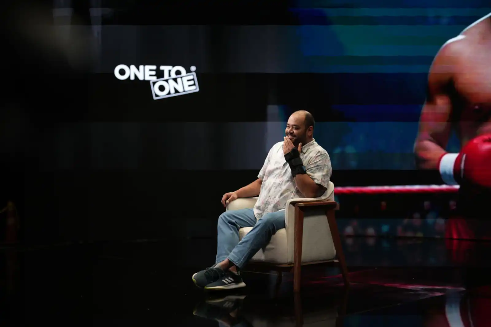ويتميّز "برنامج وان تو وان" بتجربة فريدة من نوعها، إذ لا يظهر فيه مذيع تقليدي، بل يواجه النجم نفسه عبر شاشة ضخمة تُعرض عليها أكثر من 25 مشهدًا تم إنشاؤها باستخدام الذكاء الاصطناعي، لتجسيد مراحل حياته المختلفة: الماضي، الحاضر، والمستقبل.