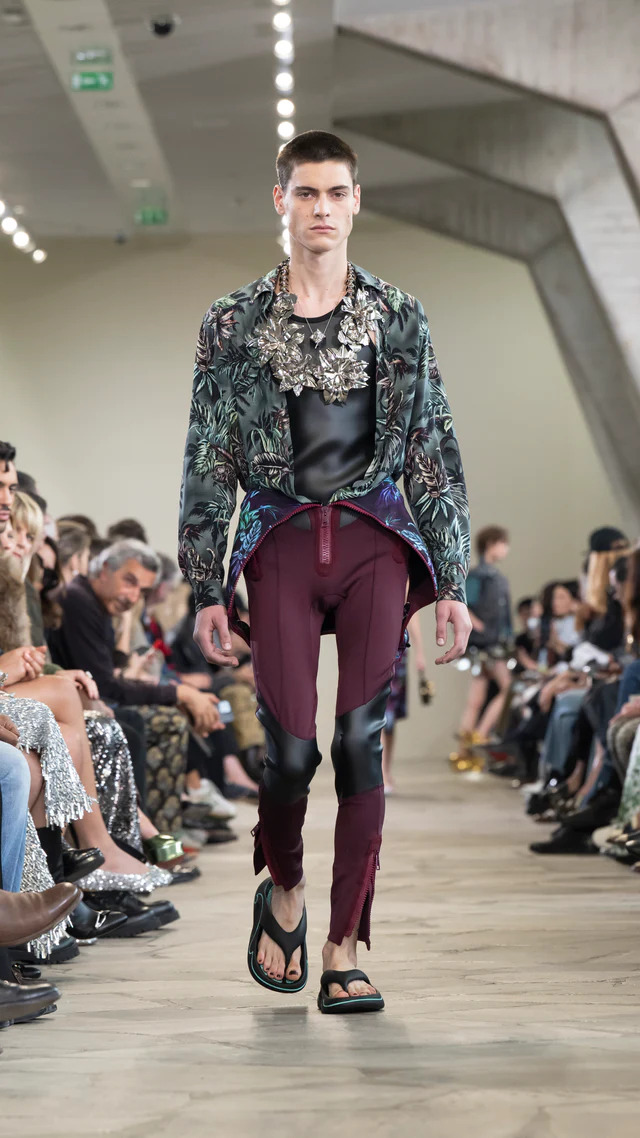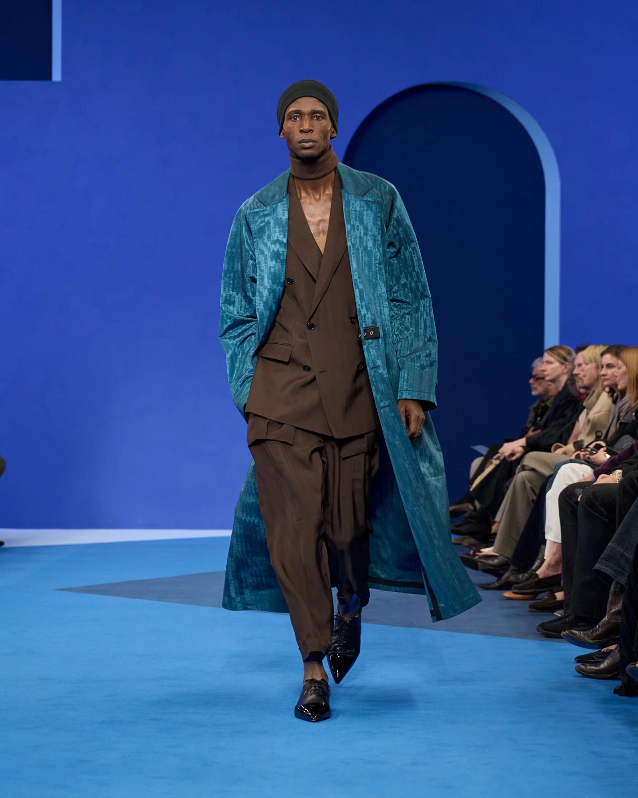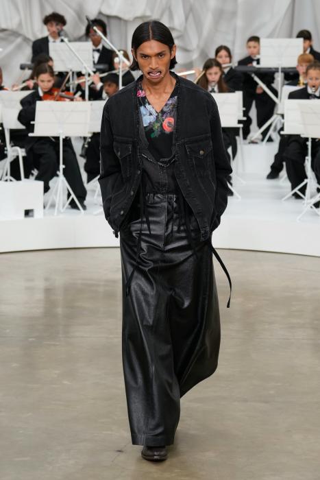 من بين القطع التي حظيت بإعجاب الجمهور، السترات المغطاة بشيفون أسود خلقت إطلالة شبحية غامضة، بالإضافة إلى السترات والمعاطف الرجالية المدمج فيها أوشحة حريرية عند خط العنق، ما أضفى تأثيرًا بصريًا ذكيًا وخدعًا أنيقة للعين.