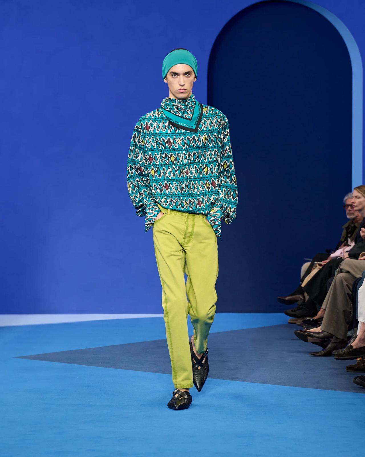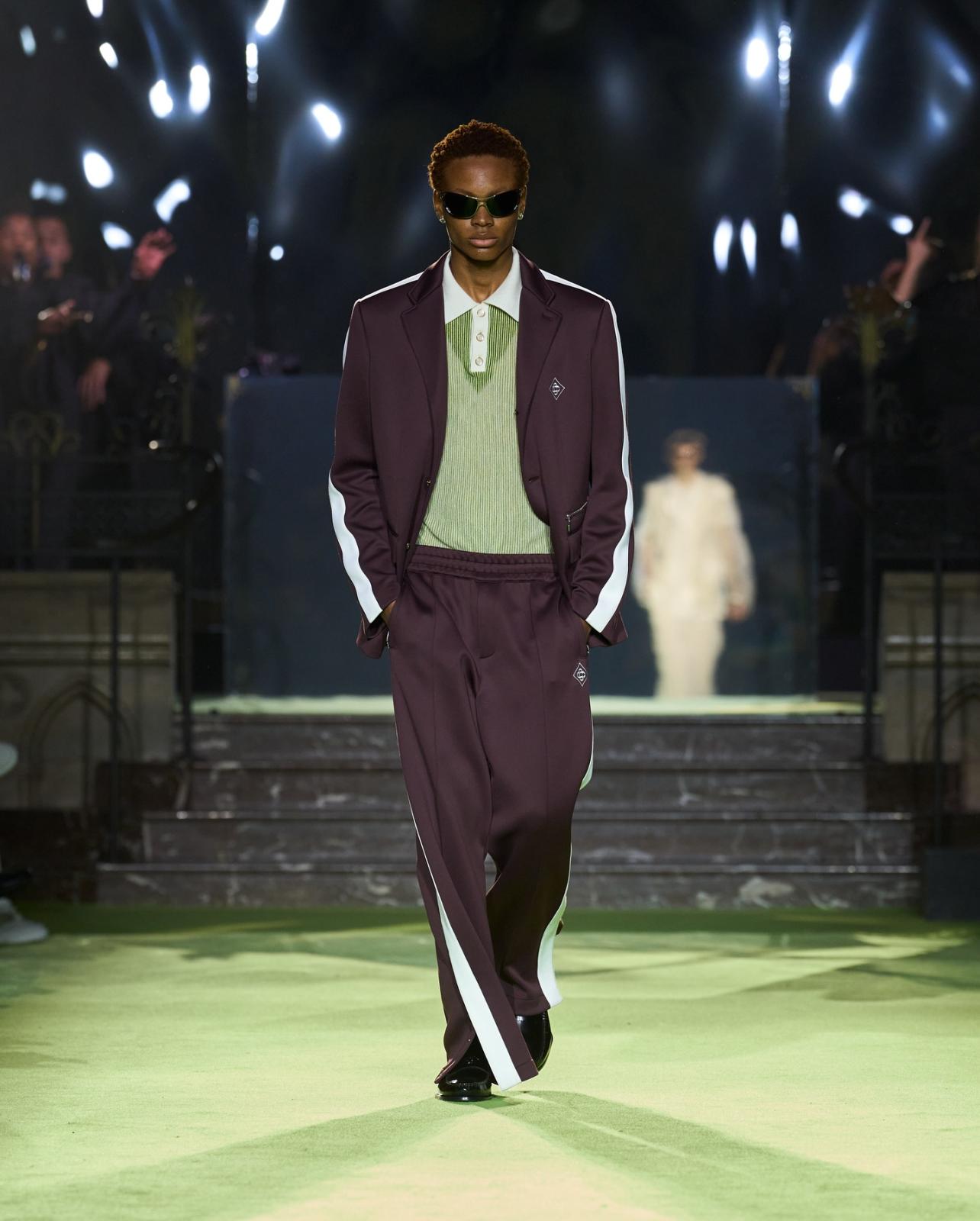 قدّمت البدل الرجالية بتصاميم أنيقة ومبتكرة، شملت بدلة بدون أكمام، مع شورت مصمم بأسلوب متناسق، فيما برزت السراويل الملونة بألوان ساطعة وحيوية، لتضفي على الإطلالات لمسة جريئة وعصرية.