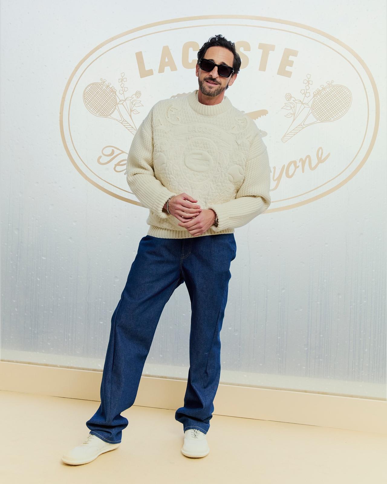 شهد عرض أزياء دار لاكوست حضور النجم أدريان برودي بإطلالة عصرية أنيقة، حيث ارتدى كنزة صوفية مزينة بحياكة مستوحاة من كرات التنس، ونسّقها مع سروال جينز أضفى على مظهره لمسة كاجوال متوازنة مع روح العرض.