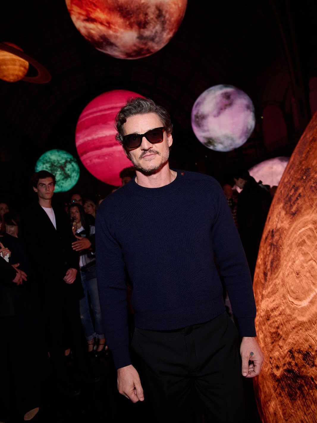 حضر النجم بيدرو باسكال عرض أزياء دار شانيل للأزياء لربيع وصيف 2026، مرتديًا إطلالة كاجوال بسيطة من كنزة صوفية خفيفة باللون الكحلي ونسقها مع سروال أسود اللون.