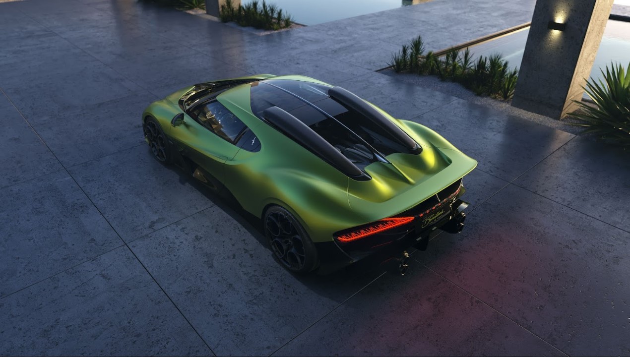 ورغم أنّ التصميم العام للسيارة مستوحى بنسبة كبيرة من تصميم Mistral، فإنّ هناك العديد من الاختلافات التي تظهر بشكلٍ واضح على غطاء الصندوق الأمامي الذي يتضمن مساحات تكشف عن مادة ألياف الكربون وفتحات تهوية بتصميم مختلف، شأنها بذلك شأن الفتحتين الجانبيتين على الرفارف الأمامية خلف الإطار المحيط بالعجلات والذي يهدف لتوفير المزيد من التهوية للمكابح.