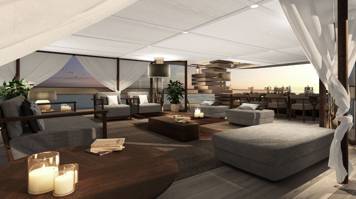 ويؤكد الاستوديو أن المشروع "يشرك جميع الحواس الخمس"، حيث صُمم توزيع الإضاءة والمواد الطبيعية والألوان بعناية فائقة لتحقيق توازن بصري وراحة حسية تُشعر الركاب بانسجام تام مع البحر.