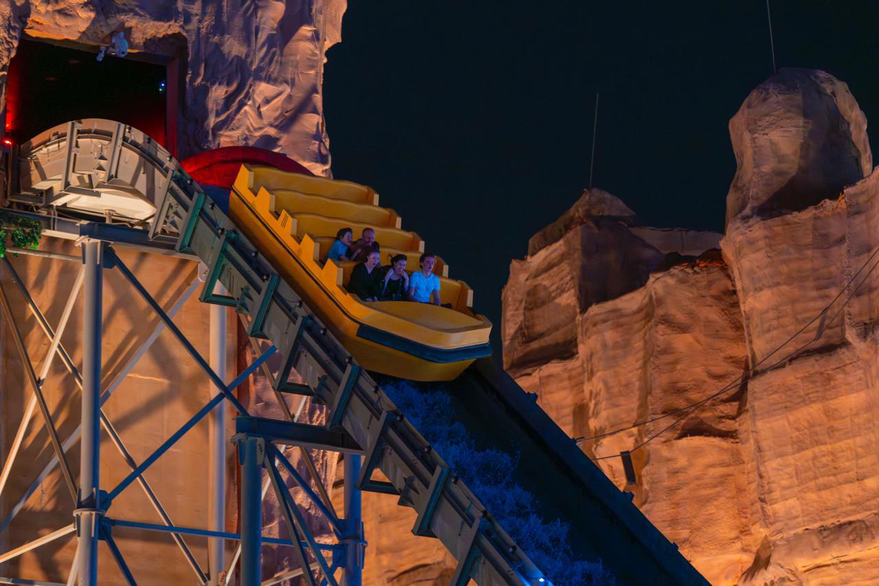 وبعد تصاعد التوتر، يرتفع القارب إلى قمة عالية، ليندفع نزولًا من ارتفاع 20 مترًا، في مشهد حماسي ومشوق، محدثًا موجة مائية ضخمة تُعد من أقوى لحظات الإثارة في بوليفارد وورلد.