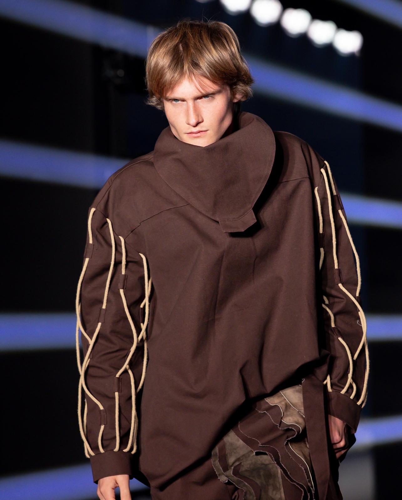 قدمت العلامة التجارية كارغو أزياء تحاكي جيل Z بطابع من الفضاء والمستقبل، هيمنت الألوان الترابية على المجموعة، وتعكس هدوء الطبيعة وسحر الأرض، وأعطت للعرض بعدًا دافئًا، وظهرت الدرجات نفسها في بدلات عصرية بطابع شبابي واضح.