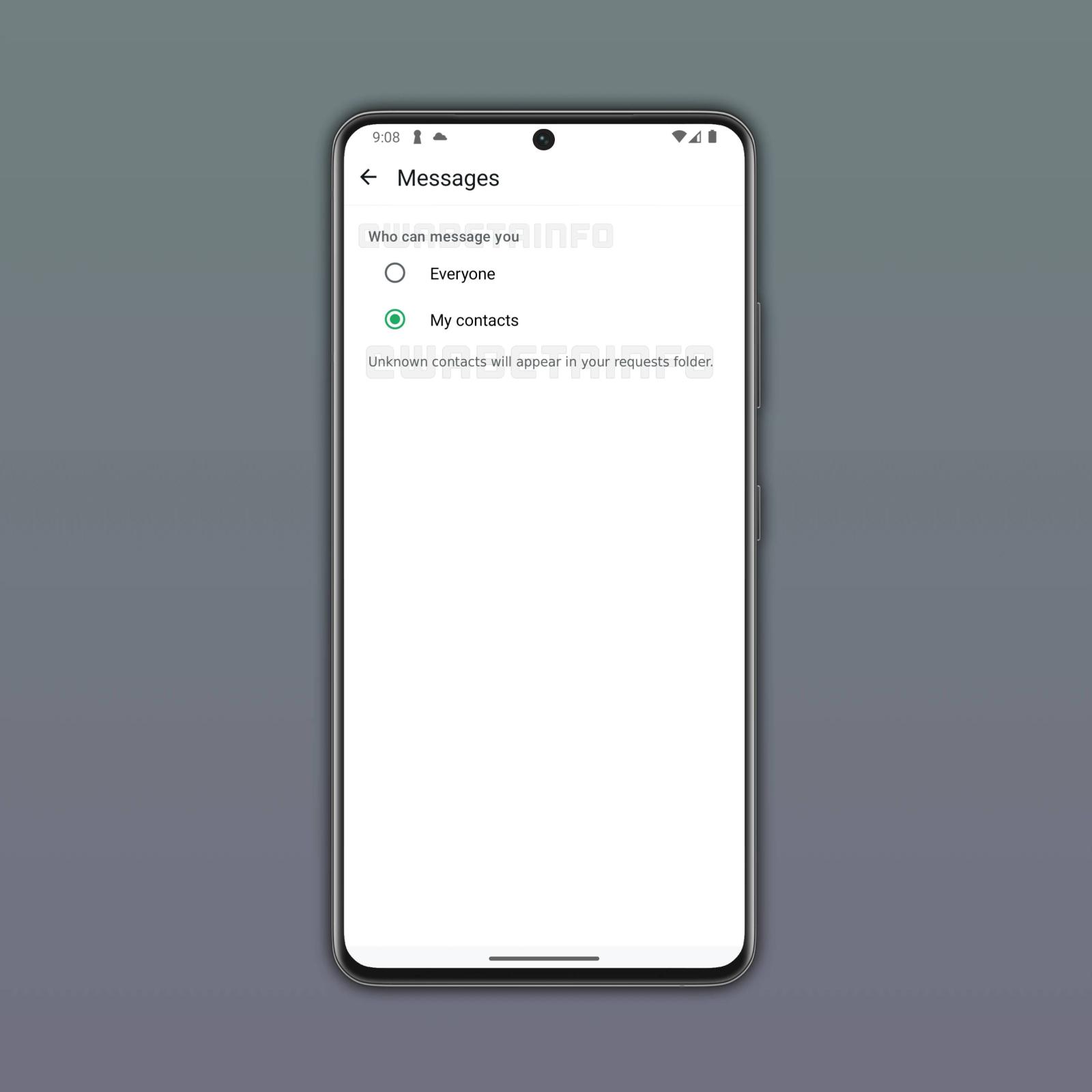 "جهات اتصالي": يوفّر طبقة إضافية من الخصوصية، إذ تُرسل الرسائل من جهات غير معروفة إلى مجلد جديد باسم "الطلبات" بدلًا من صندوق الدردشات الرئيسي.