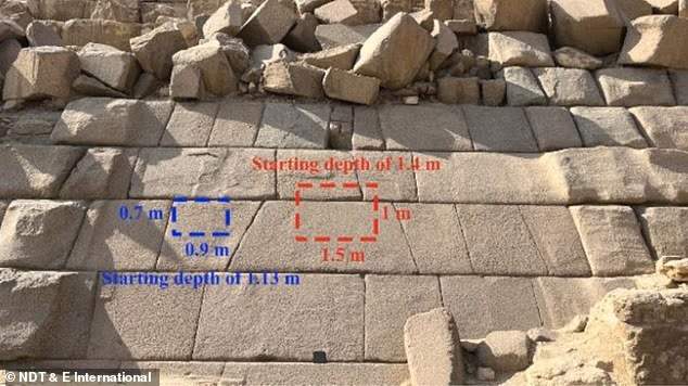 وأسفرت هذه التقنيات عن اكتشاف فراغين مملوءين بالهواء خلف واجهة حجر جرانيتية على الجانب الشرقي للهرم، بمساحات وأعماق مختلفة، مما يدعم فرضية وجود مدخل إضافي في هذا الجانب المطل على نهر النيل.