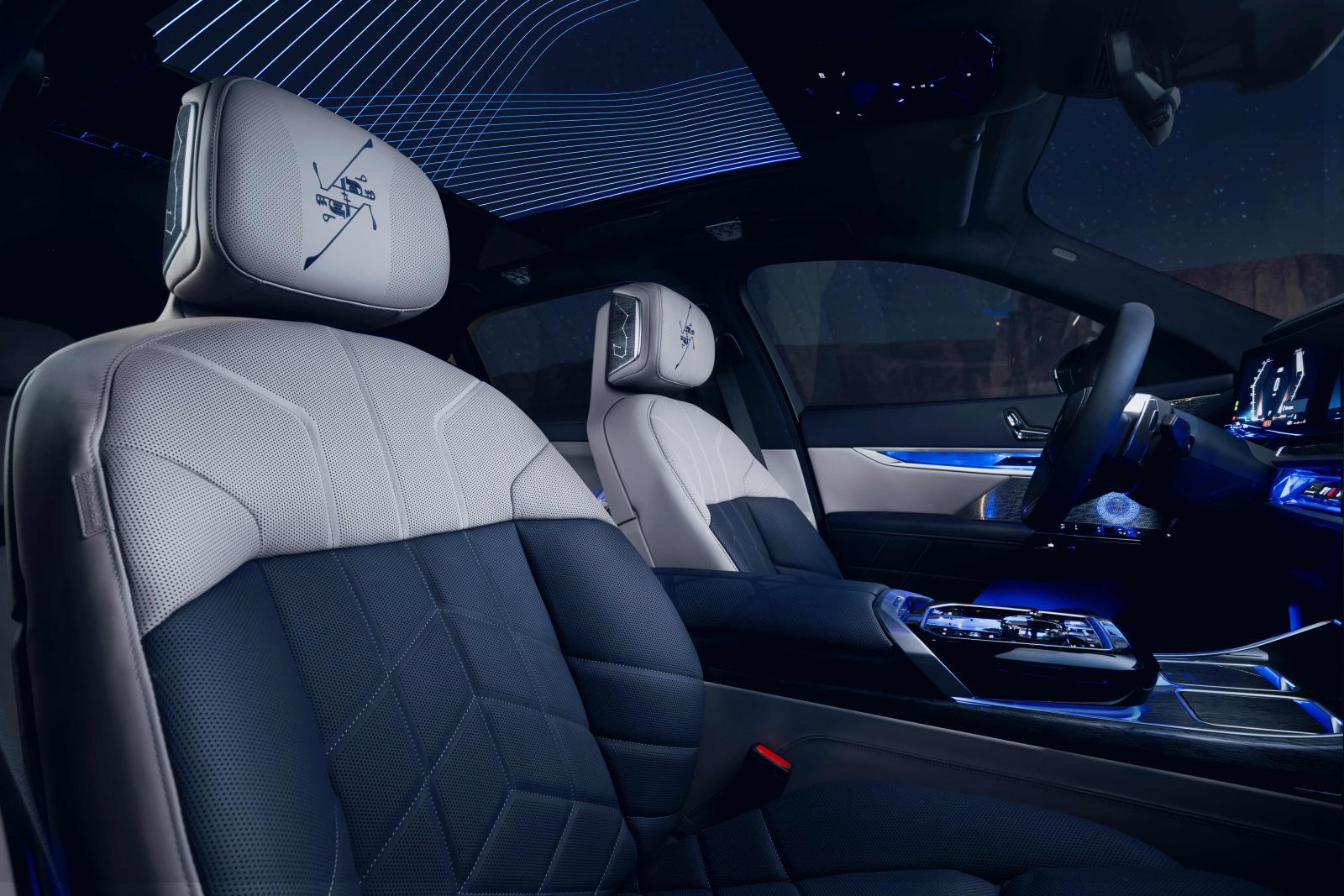 سقف BMW Sky Lounge يضفي بعدًا بصريًا استثنائيًا، بإضاءة تحاكي جمال النجوم، ليخلق أجواءً راقية تذكّر بهدوء ليالي الصحراء، فيما تضفي جلود ميرينو الفاخرة بدرزاتها الدقيقة ملمسًا ناعمًا يكتمل معه الشعور بالرقي.