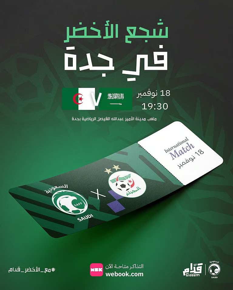طرح تذاكر مباراة المنتخب السعودي والجزائر استعدادًا لكأس العرب.. تفاصيل