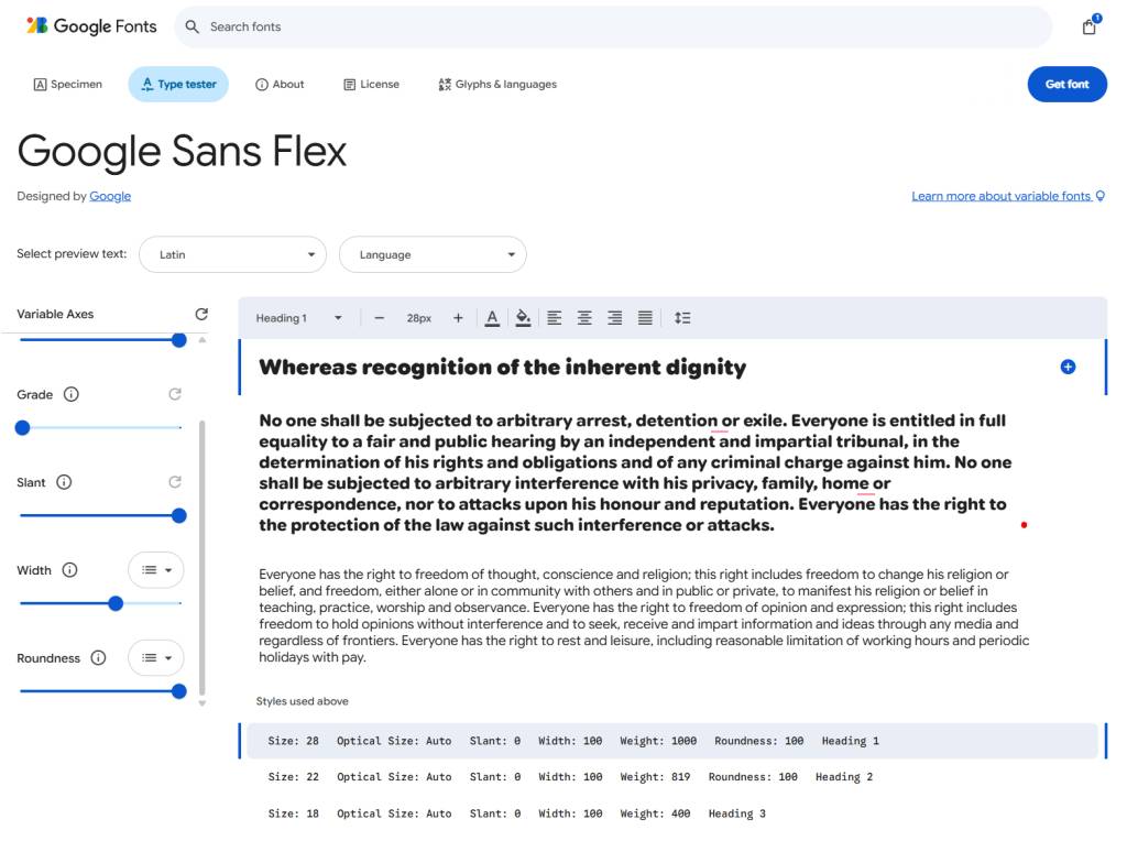 أعلنت شركة غوغل رسميًا عن إتاحة خطها الشهير غوغل سانس فليكس للتحميل والاستخدام العام عبر منصة «غوغل فونتس».
