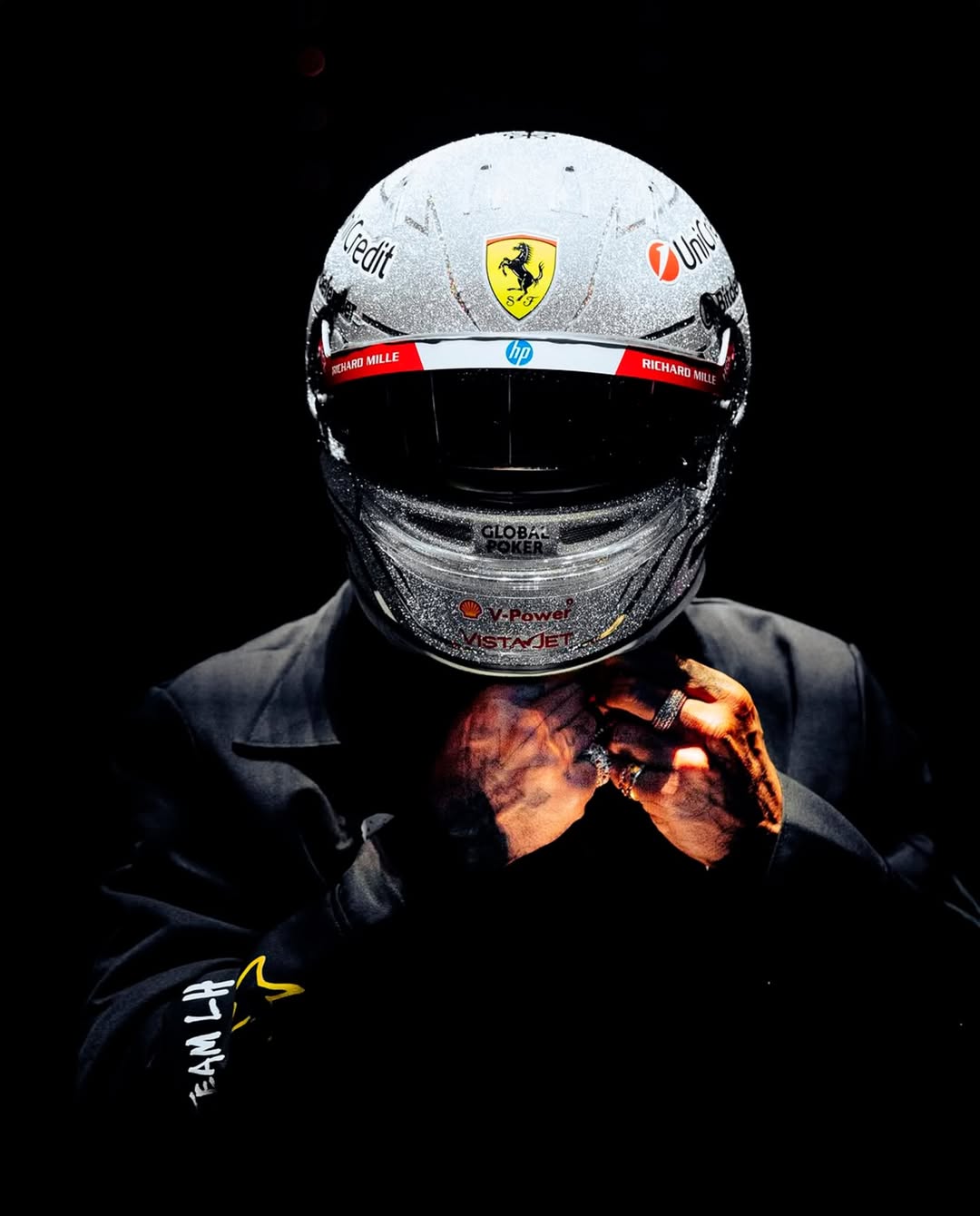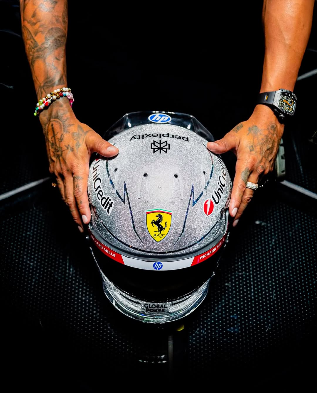 وجاء تصميم الخوذة بلمسة مستوحاة من روح لاس فيغاس، حصرياً له بواسطة شركة Bell Racing Helmets، ليكون عرضاً للجرأة والأناقة والتفرد.