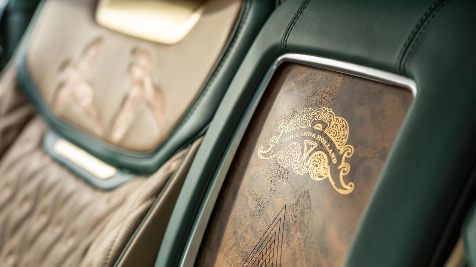 تحمل المقاعد شعار هولاند آند هولاند في مساند الرأس، بينما تزين مساند الظهر طيور مطرزة بعناية، وتحمل الكونسولات الوسطية الأمامية والخلفية نفس الشعار الذهبي المزخرف، مع توقيع "واحدة من خمسة وعشرين"، تأكيدًا على أن إنتاج هذه النسخة مقصور على 25 سيارة فقط حول العالم، ما يزيد قيمتها لهواة الاقتناء.