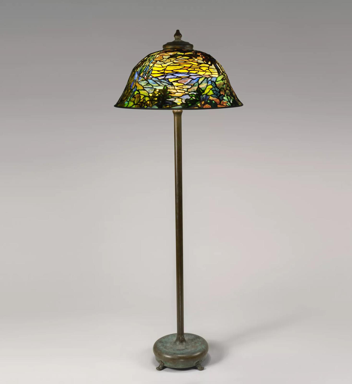 ويتضمن المزاد مصباحًا أرضيًا نادرًا بتصميم المناظر الطبيعية، بقيمة تقديرية تتراوح بين 500,000 و700,000 دولار أمريكي، ليُقدَّم كواحد من أبرز الأمثلة على قدرة تيفاني على المزج بين الضوء والشكل بطريقة فنية مبهرة.