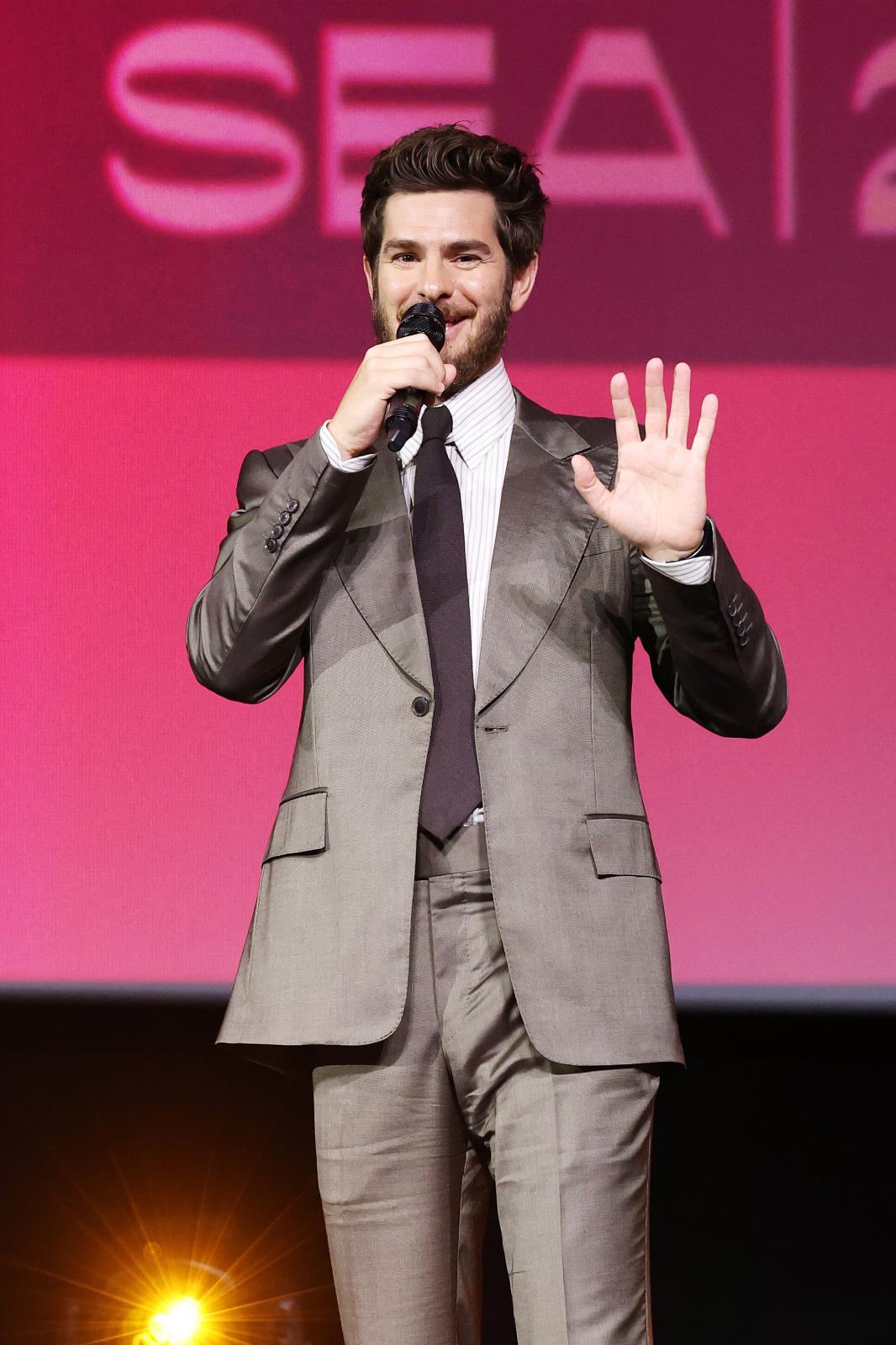 بدلة كلاسيكية ظهر بها أندرو جارفيلد على المسرح خلال فعاليات المهرجان – المصدر: مهرجان البحر الأحمر السينمائي