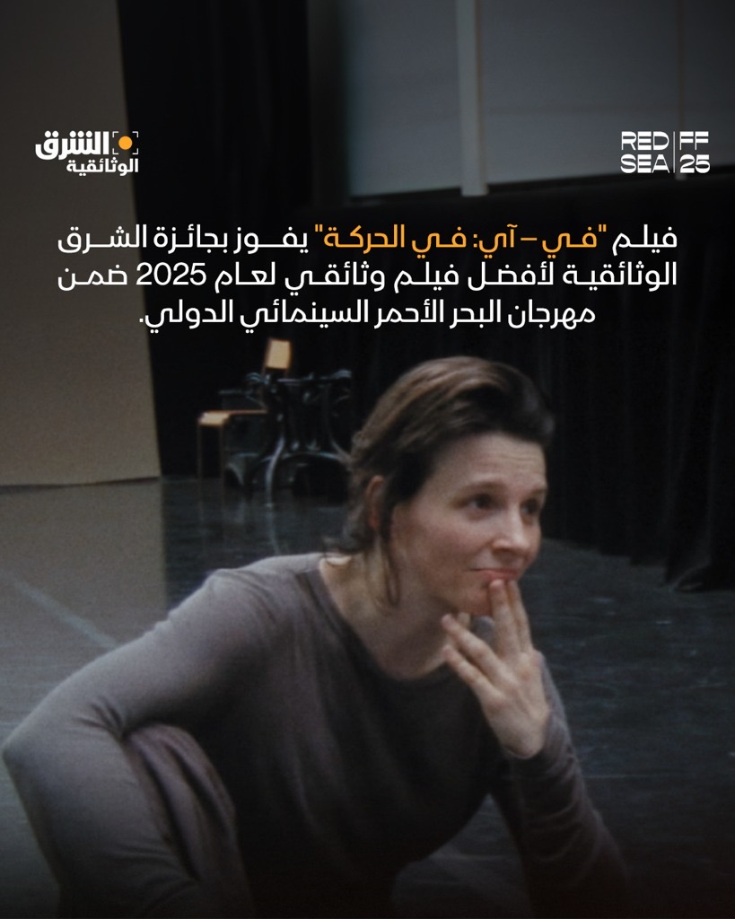 أعلنت الشرق الوثائقية عن فوز فيلم"في -آي: في الحركة" ( In-I In Motion) ، من إخراج جولييت بينوش، بـ جائزة الشرق الوثائقية ضمن فعاليات مهرجان البحر الأحمر السينمائي الدولي، وذلك للعام الثالث على التوالي الذي تقدم فيه الجائزة احتفاءً بالأعمال الوثائقية ذات الرؤى الإبداعية الجديدة.