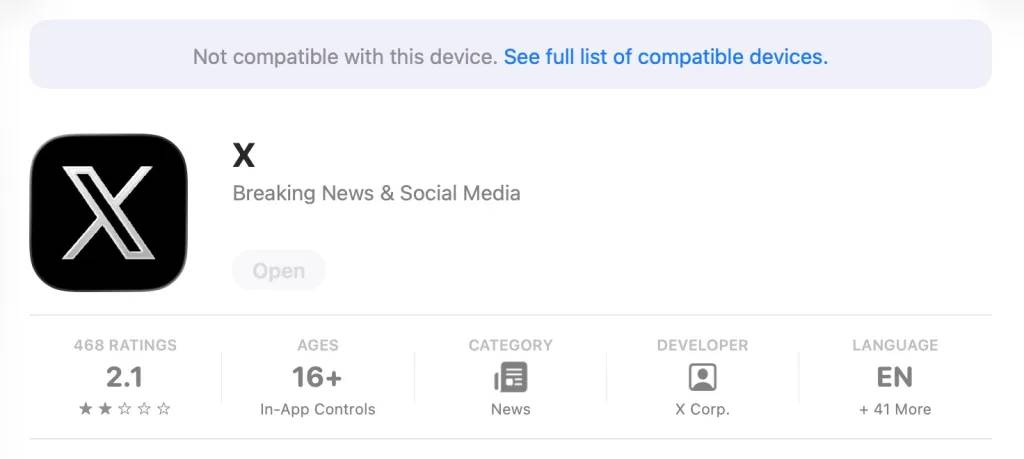 أعلنت منصة X عن توقفها عن دعم تثبيت تطبيق iPad على أجهزة Mac العاملة بمعالجات Apple Silicon، ما يعد خطوة إضافية في سلسلة القرارات التي تشير إلى تخلّي الشركة عن أي دعم رسمي لنظام macOS.