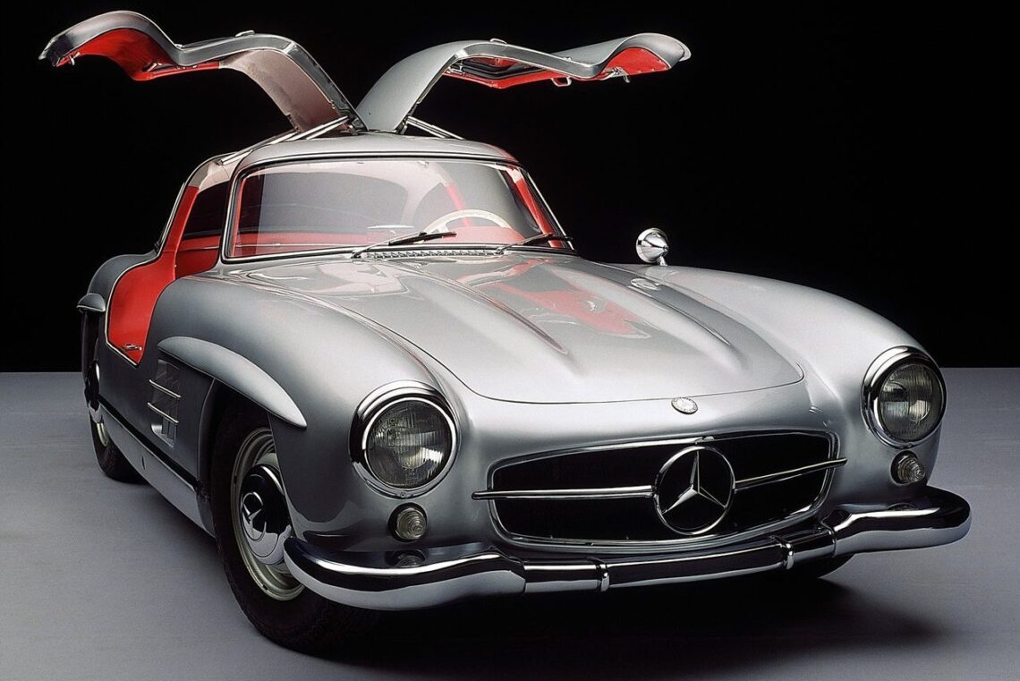 السيارة، التي ظهرت لأول مرة عام 1954 كنسخة معدلة للاستخدام على الطرقات من سيارة السباق 300 SL، تمتاز بأبوابها الفريدة التي تشبه أجنحة النورس، وهو ما منحها شهرة عالمية بين هواة جمع السيارات.