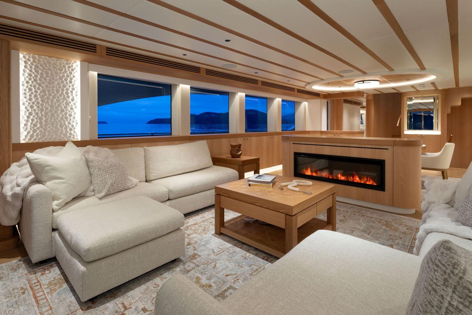 التصميم الداخلي لليخت حمل توقيع المهندس المعماري البحري غريغوري سي. مارشال، الذي اعتمد أسلوبًا عصريًا مريحًا، يرتكز على استخدام الأخشاب الفاتحة ولمسات ديكور هادئة تعزز الإحساس بالاتساع والضوء الطبيعي.