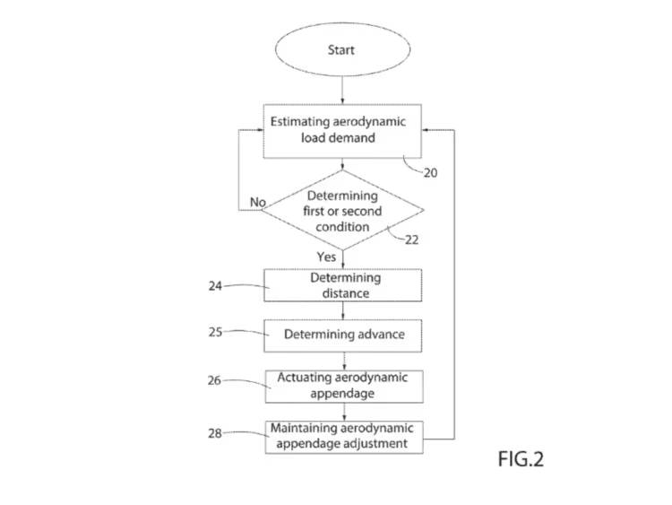 توضح براءة الاختراع، التي تحمل عنوان “نظام تحكم تنبؤي للعناصر الأيروديناميكية في مركبة طرقية”، أن الأيروديناميكا النشطة من فيراري تعتمد على خوارزميات تنبؤية لتقدير متطلبات القوة السفلية وظروف القيادة القادمة.