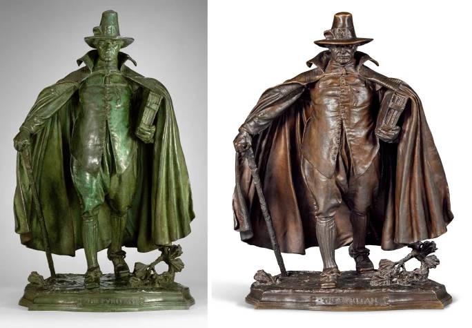 يعود تاريخ تصميم The Puritan إلى عام 1886، وهو تمثال برونزي بارتفاع 78 سنتيمترًا، يُعد واحدًا من نحو 40 نسخة مصغرة معروفة لعمل ضخم يبلغ ارتفاعه قرابة 9 أقدام، ما يزال قائمًا حتى اليوم في مدينة سبرينغفيلد بولاية ماساتشوستس.
