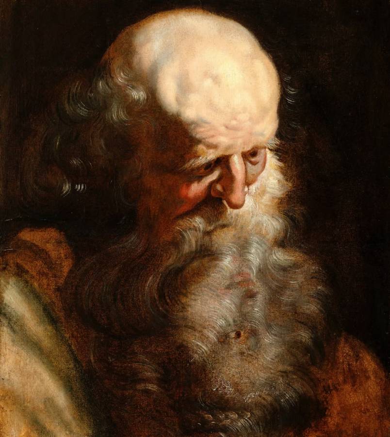 و تظهر اللوحة رجلا مسنا وامرأة مخفية تحت لحية الرجل، وقد سبق ظهور هذا الرجل في أعمال عديدة لروبنز مثل: رفع الصليب في كاتدرائية أنتويرب، وعبادة الملوك الثلاثة في متحف برادو بمادريد، وضريبة المال في متحف شرف الشجعان في سان فرانسيسكو، كما كانت المرأة جزءًا من لوحة سابقة أعاد روبنز استخدامها لتكوين عمل جديد.