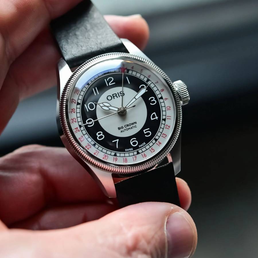 وتُعد ساعة "أوريس Big Crown Pointer Date" أول ساعة طيارين متخصصة في تاريخ العلامة، حيث صُمم التاج الكبير ليسهل استخدامه أثناء ارتداء القفازات داخل قمرة القيادة غير المدفأة.