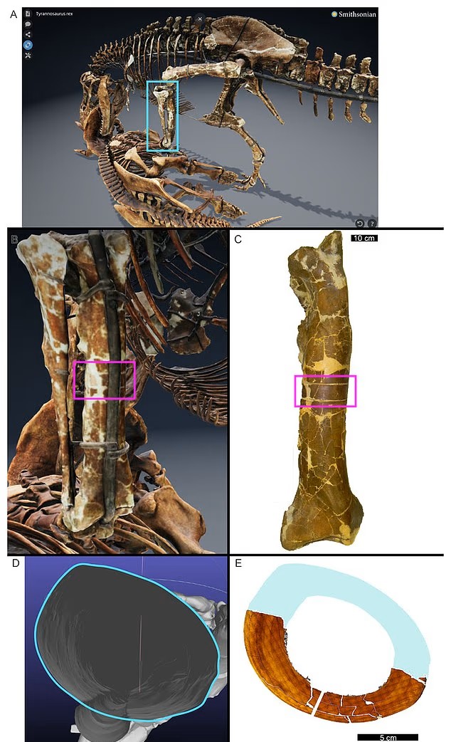واعتمد العلماء في دراستهم، التي نشرت في مجلة (PeerJ) العلمية، على فحص عظام أرجل متحجرة لـ 17 عينة من فصيلة التيرانوصور، تم جمع معظمها من متاحف في ولايتي مونتانا وداكوتا الشمالية.