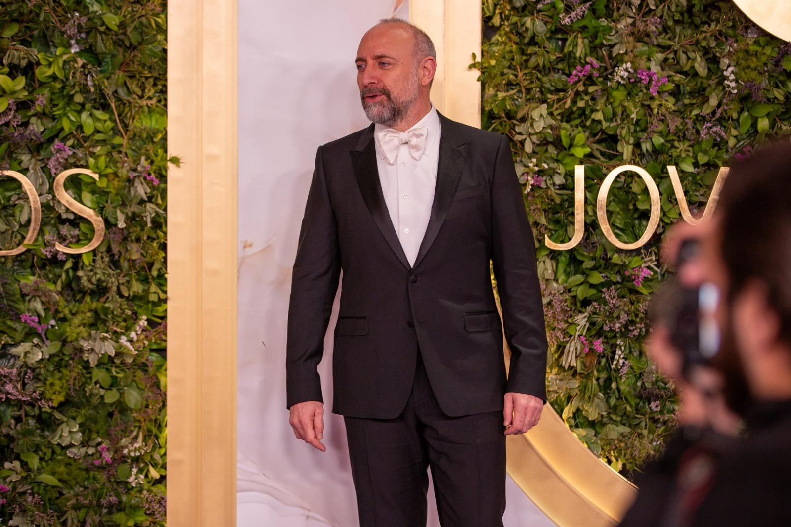 وتميزت إطلالته بطابع مختلف، إذ اختار بدلة رمادية أنيقة نسقها مع ربطة عنق بيضاء، كاسراً بذلك هيمنة اللون الأسود.