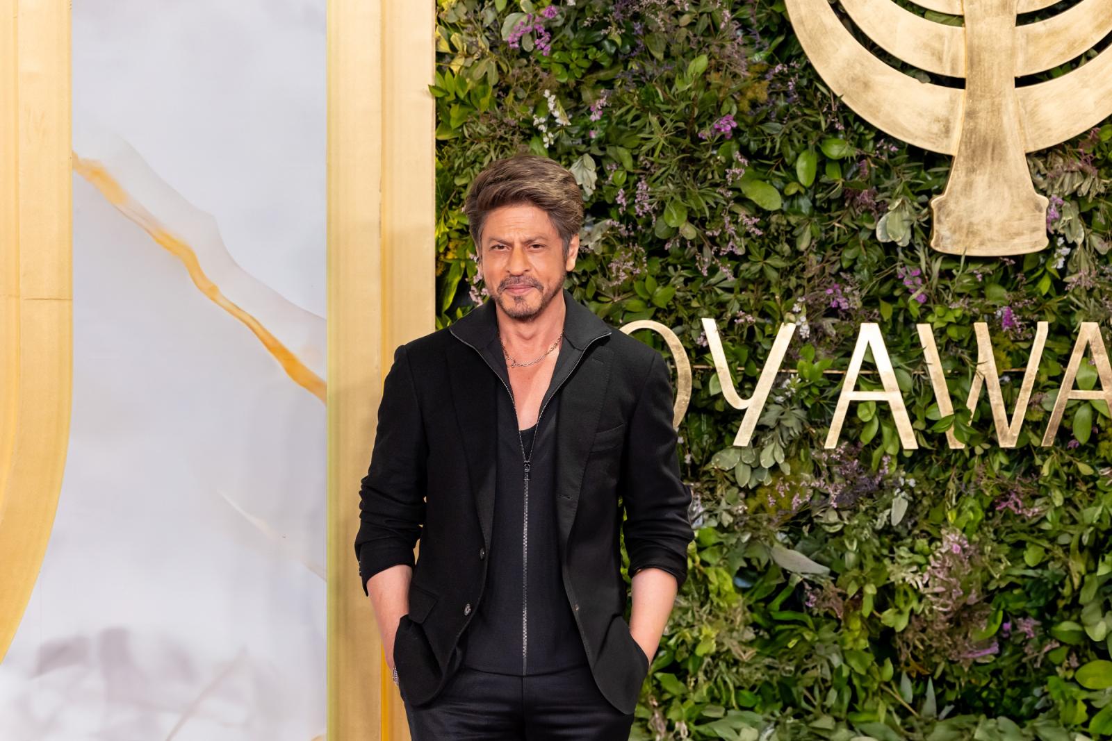 واعتمد النجم الهندي شاه روخ خان أسلوباً عصرياً متحرراً في تنسيق بدلته السوداء؛ حيث استغنى تماماً عن القميص الكلاسيكي وربطة العنق، واستبدلهما بسترة سوداء ذات سحاب (Zip-up) ارتداها أسفل سترة البدلة، مع "تانك توب" أسود كطبقة سفلية، فيما أكمل إطلالته بسلسلة قصيرة زينت عنقه، مضفياً طابعاً شبابياً على مظهره.