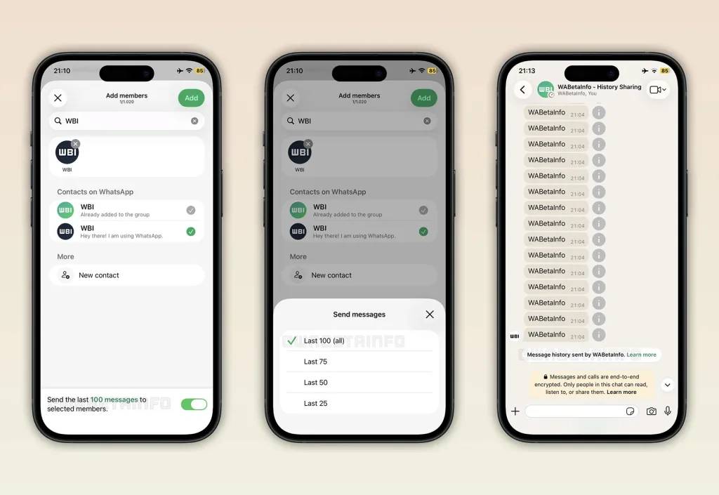 وبحسب ما كشفه موقع "وابيتا إنفو"، بدأت شركة ميتا باختبار الميزة عبر نسخة تجريبية من "واتساب" على منصة تيست فلايت, حيث يمكن لأعضاء المجموعات اختيار مشاركة ما يصل إلى 100 رسالة حديثة من الدردشة، على أن تكون هذه الرسائل ضمن فترة لا تتجاوز 14 يومًا.