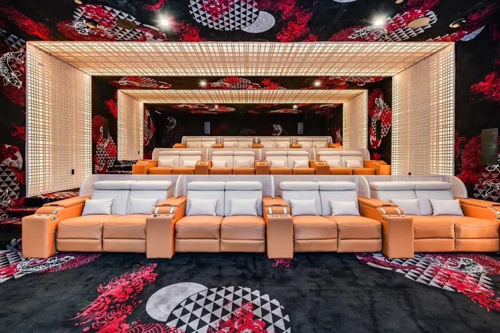 يضم القصر 10 غرف نوم و20 حماماً، إضافة إلى مطبخ احترافي قادر على خدمة 200 ضيف، وغرفة شاي يابانية، وصالة سينما متطورة بشاشة 235 بوصة.