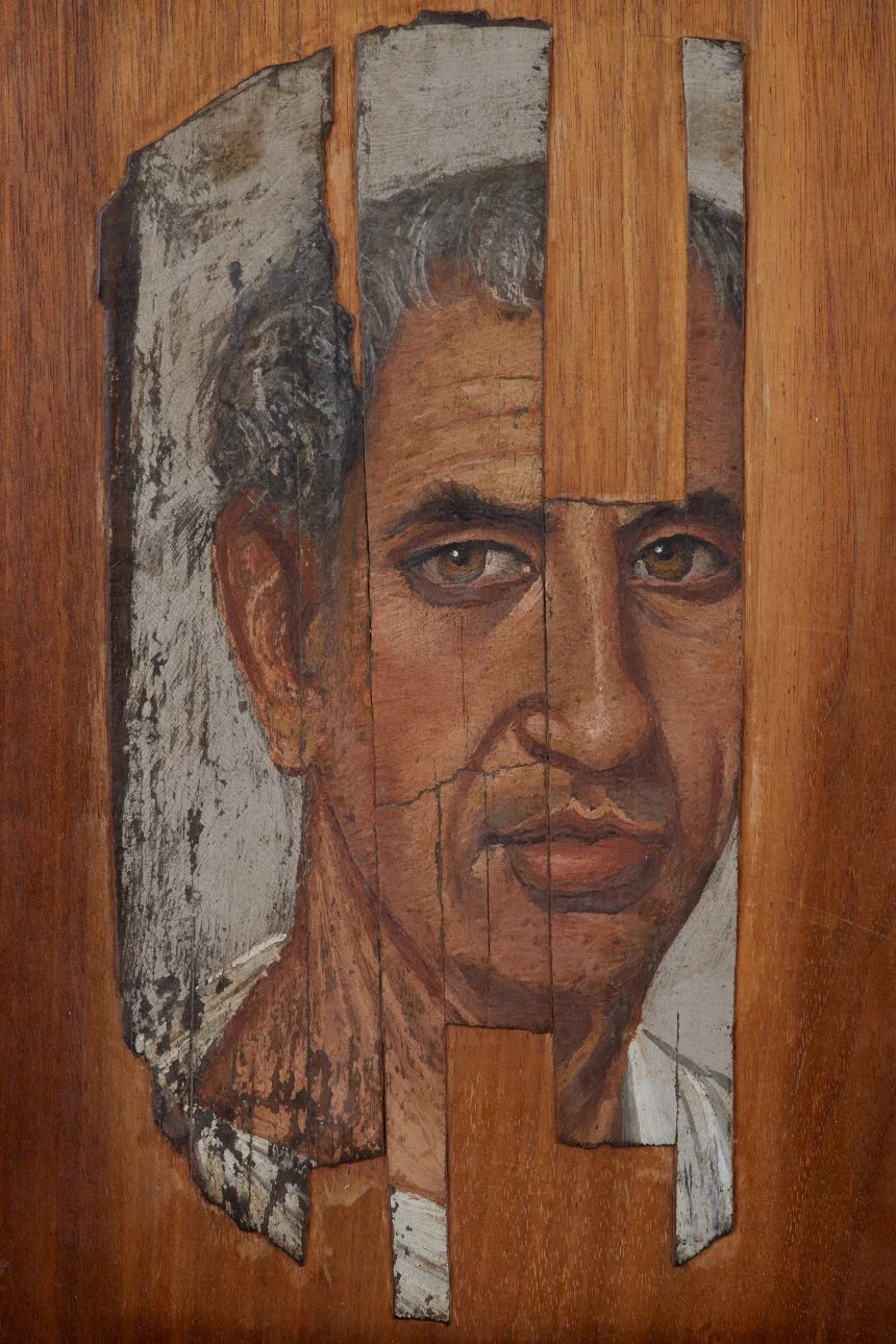 اللوحة التي تنتمي إلى مجموعة صور المومياء في الفيوم، تتميز بعيون عسلية ثاقبة وشعر رمادي، وتُعد مثالًا نادرًا على الواقعية المبكرة في الفن الشخصي، إذ يعود تاريخها إلى القرن الأول الميلادي.