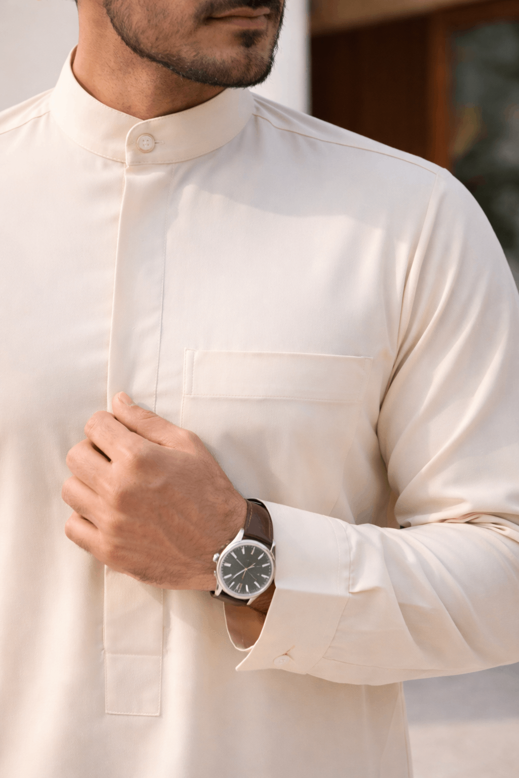 في يوم التأسيس، قد يبدو الثوب الأبيض خيارًا محسومًا. لكنه في الحقيقة أكثر العناصر حساسية في الإطلالة. فالأبيض ليس لونًا واحدًا، بل طيف واسع من الدرجات التي يمكن أن تعزز حضور الرجل ومساحة دقيقة من الاختيارات. هو الخلفية التي تُبنى عليها الإطلالة كاملة، والسطح الذي يعكس الضوء، ويُبرز ملامح الوجه، ويُحدد علاقة البشت بالجسم.
